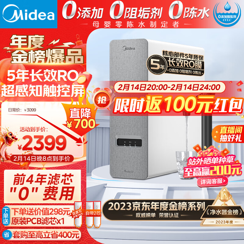 美的(Midea)净水器家用净水机白泽1000G pro 5年RO反渗透 厨下式净水器厨房过滤器直饮机 触控屏2.72L/分价格:2599.00元!