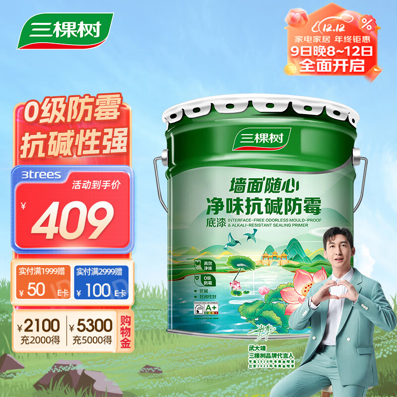 三棵树漆内墙乳胶漆底漆墙面随心净味抗碱防霉底漆油漆涂料白色 15L价格:454.44元!