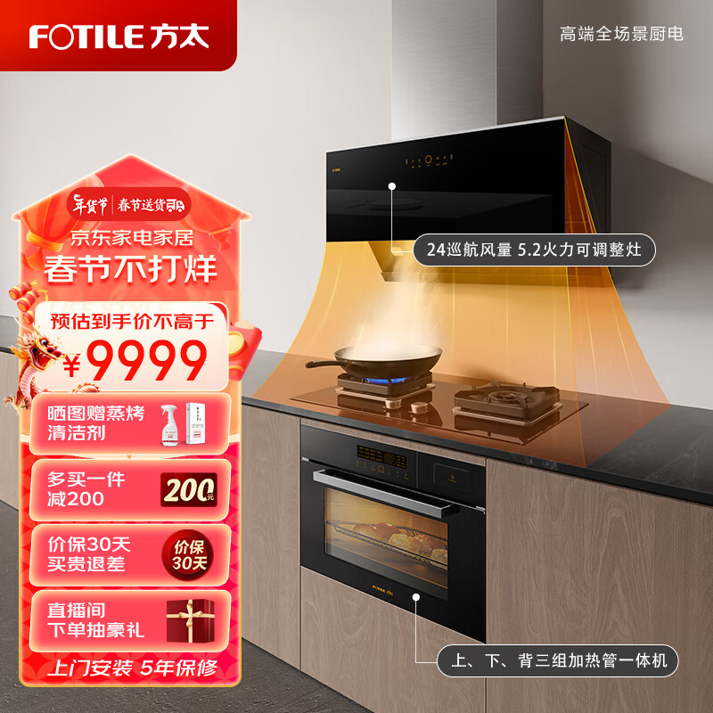 方太油烟机套装变频油烟机24巡航风量智能巡航 蒸烤炸一体机多件套JCD16T+02-TH27B+ES5.i价格:9999.00元!
