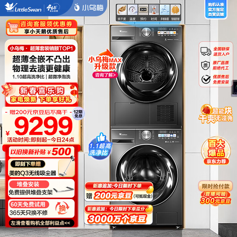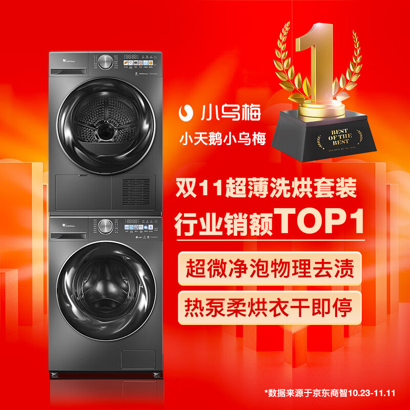 小天鹅(LittleSwan)洗烘套装10KG滚筒洗衣机全自动+热泵烘干机 超薄全嵌【小乌梅】TG100RVIC+S83【咨询了解升级款】价格:9499.00元!