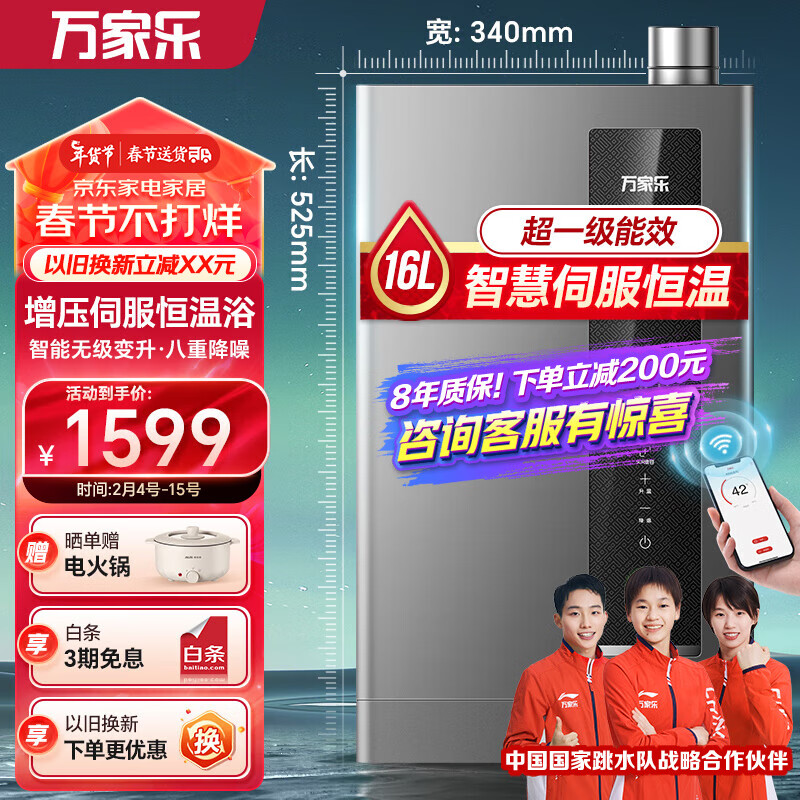 万家乐(Macro)RU5燃气热水器一级能效智慧伺服恒温 八重降噪静音舱双增大水量直流变频智能变升WIFI远控电辅防冻 【一级节能省气】JSLQ27-16RU5(F)价格:1799.00元!