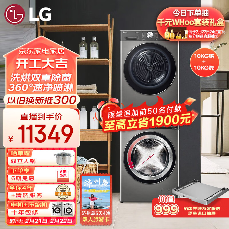 LG小旋风系列洗烘套装 10kg滚筒洗衣机全自动+10kg双转子变频热泵烘干机 FCW10Y4PA+RH10V9PV2WR 银价格:13449.00元!