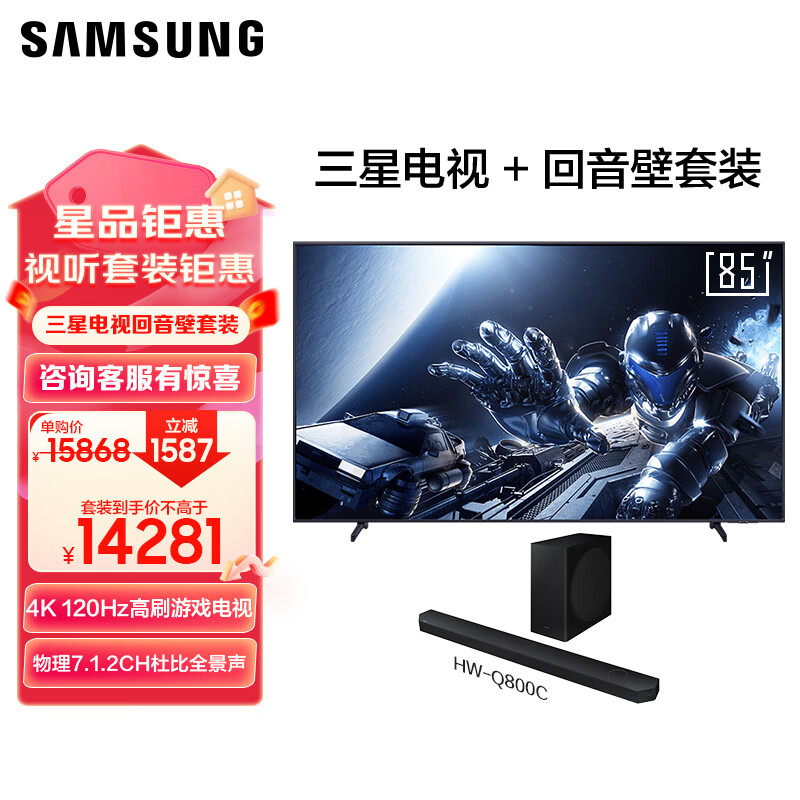 三星(SAMSUNG)85QX3C+Q800C回音壁套装 杜比全景声 DTS:X 家庭影院 电视音响回音壁 专业游戏新体验价格:14281.20元!