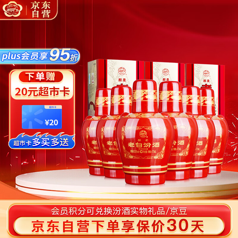 汾酒 老白汾醇柔 清香型白酒 53度 475ml*6瓶 整箱装 年货送礼价格:618.00元!