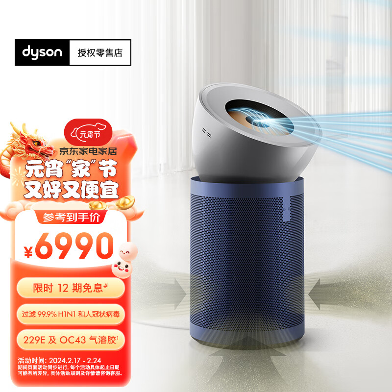 戴森(DYSON)BP03空气净化器 输出洁净凉风 大面积净化 分解甲醛 四重监测系统 10米气流喷射 【镍蓝色】价格:6990.00元!