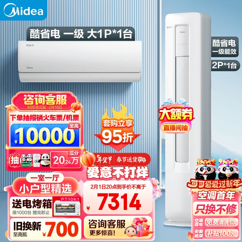美的(Midea)新一级能效 酷省电 空调套装 一室一厅 小户型精选(大1酷省电+2匹酷省电)价格:7698.00元!