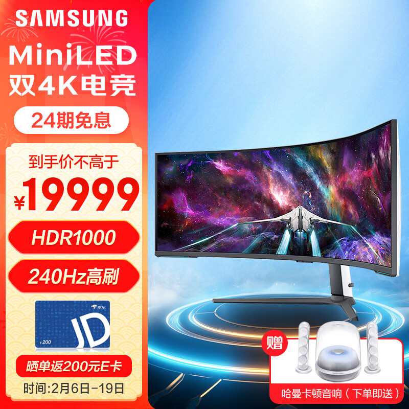 三星(SAMSUNG) 57英寸 MiniLED 双4K 240Hz HDR1000 1ms(GTG) G95NC 玄龙骑士 电竞 显示器 LS57CG954NCXXF价格:20999.00元!