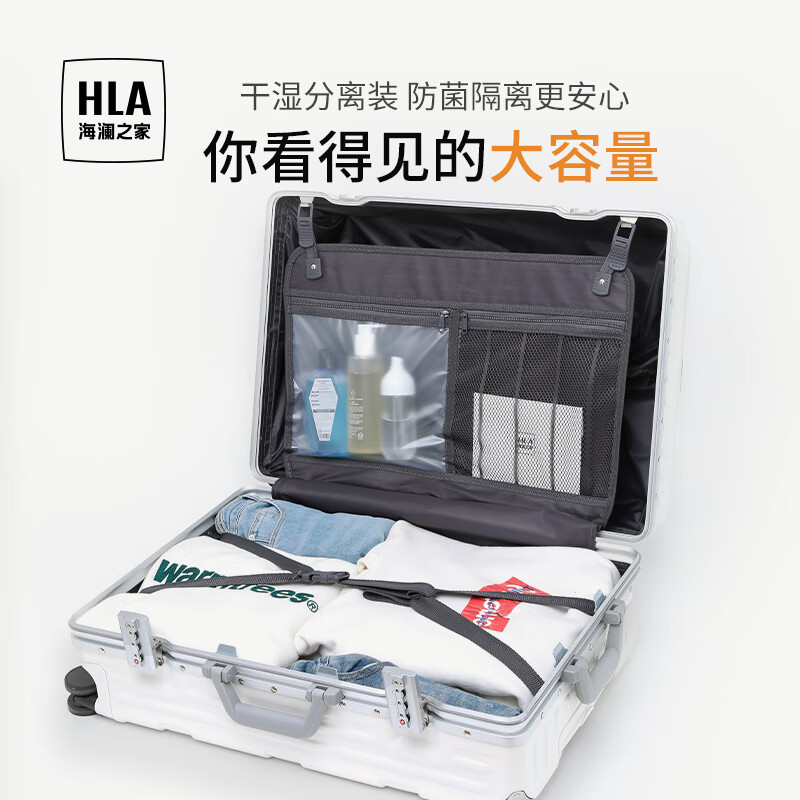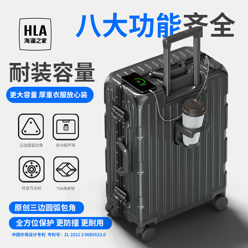 海澜之家(HLA)行李箱男女学生铝框拉杆箱旅行密码托运皮箱 曜石黑24英寸价格:419.00元!