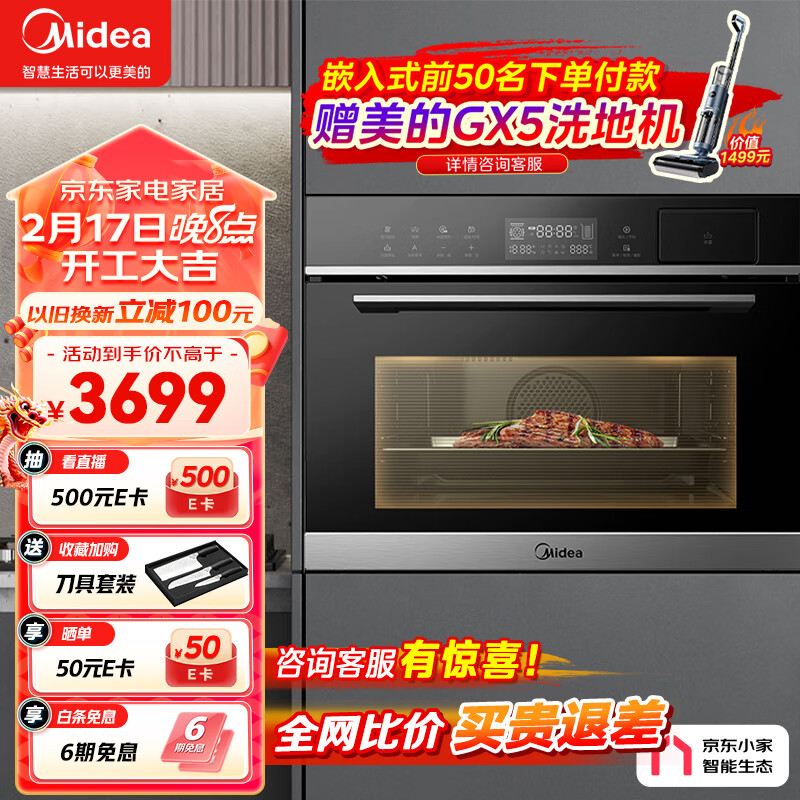 美的(Midea)嵌入式蒸烤箱一体机YA5048W(A50) 家用50L大容量多功能蒸箱烤箱二合一 搪瓷内胆 京东小家APP操控价格:3699.00元!