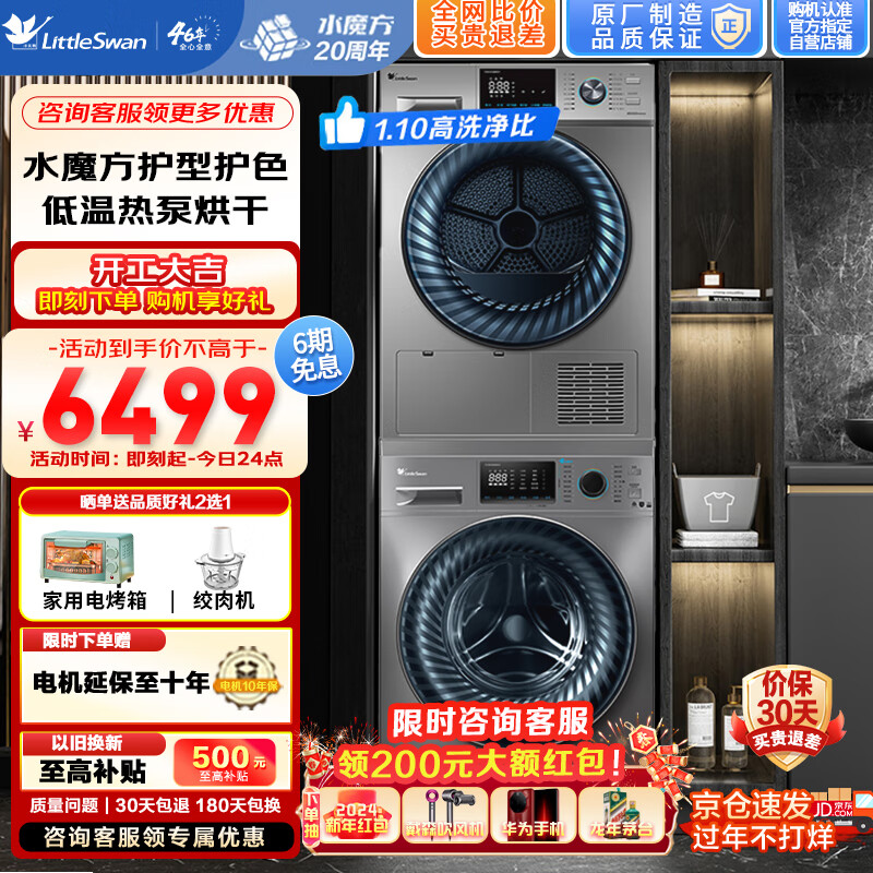 小天鹅(LittleSwan)水魔方洗烘套装 10KG全自动变频家用洗衣机+10KG护衣除菌烘干机 烘被子防缠绕 以旧换新 868+868价格:6499.00元!
