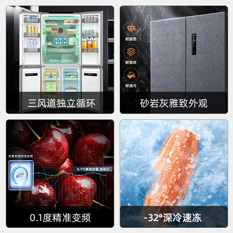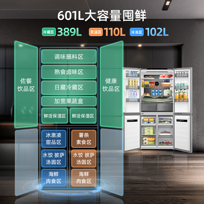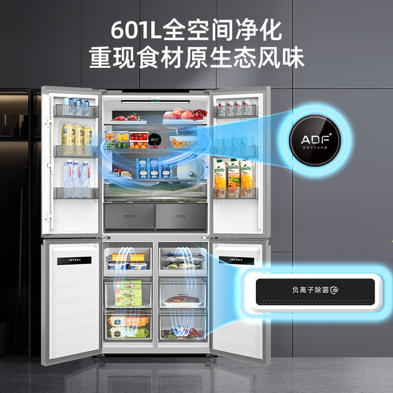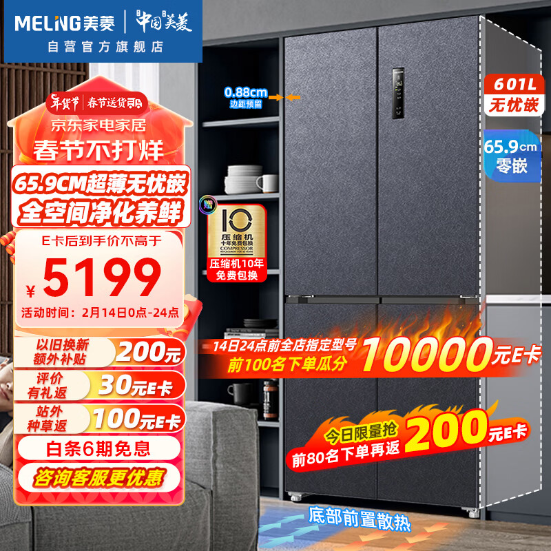 美菱(MeiLing)【无忧嵌】601升变频一级能效十字对开多门冰箱家用风冷无霜可嵌入式BCD-601WPU9CT超薄大容量灰价格:5399.00元!