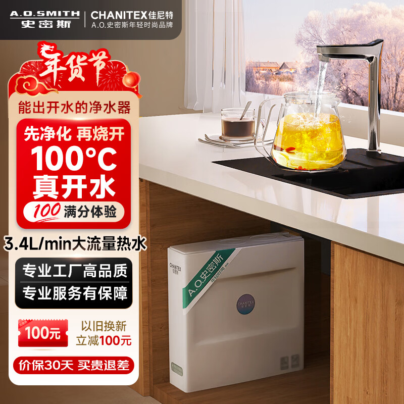 史密斯(A.O.SMITH)佳尼特能出开水的净水器厨下加热家用净水机热水3.4升/分钟多档控温0陈水CAR600-FA1 以旧换新价格:4579.00元!