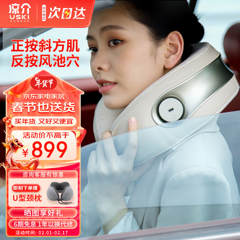 凉介USKI颈椎按摩器 MT01Pro按摩仪 肩颈按摩枕 斜方肌揉捏热敷 实用男女生日送礼物 年会礼品 白色价格:1049.00元!