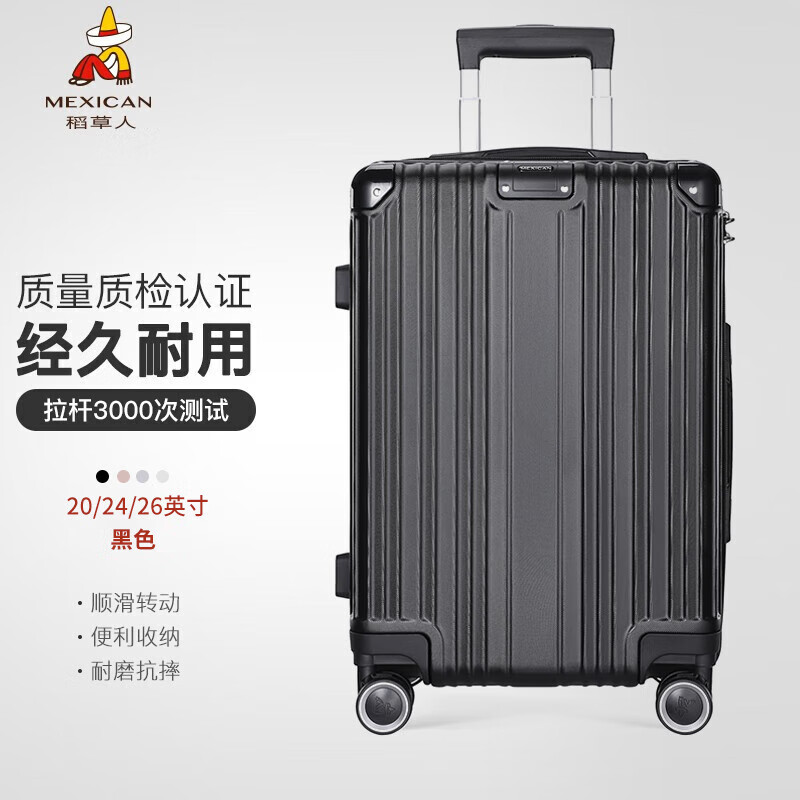 稻草人行李箱男女小型20英寸万向轮拉杆箱高颜值潮流学生密码箱旅行箱出差皮箱子免托运登机箱黑色价格:199.00元!