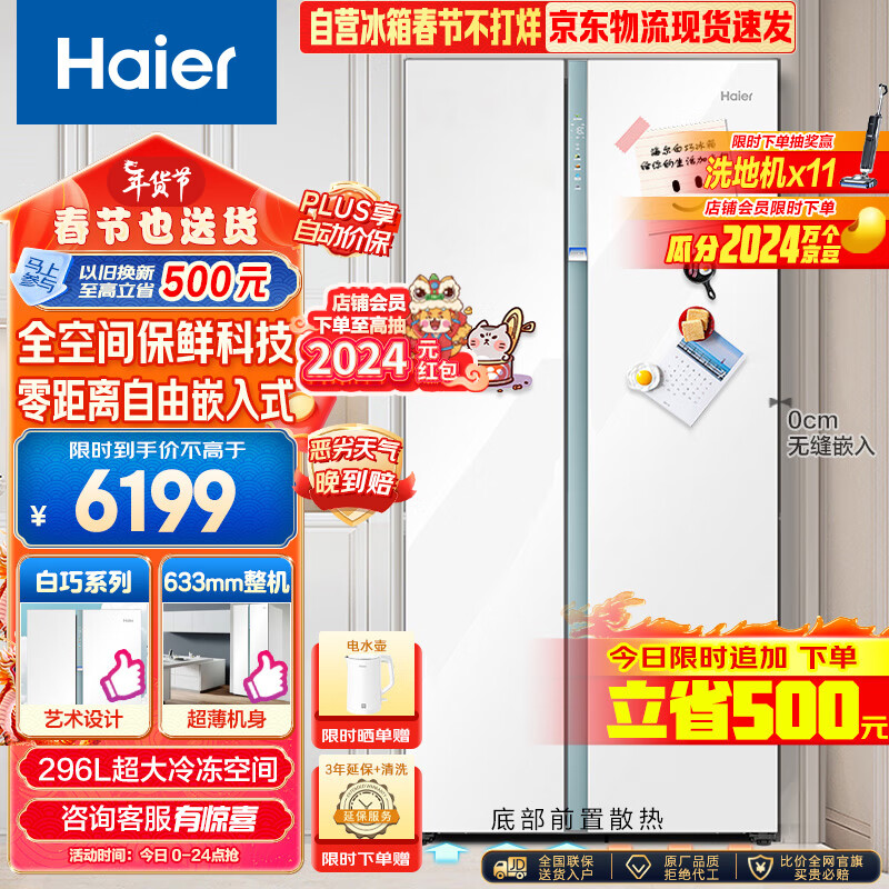海尔(Haier)白巧系列561L全空间保鲜大冷冻电冰箱家用一级能效变频对开双开门超薄零嵌入式BCD-561WLHSS14W9U1价格:6199.00元!