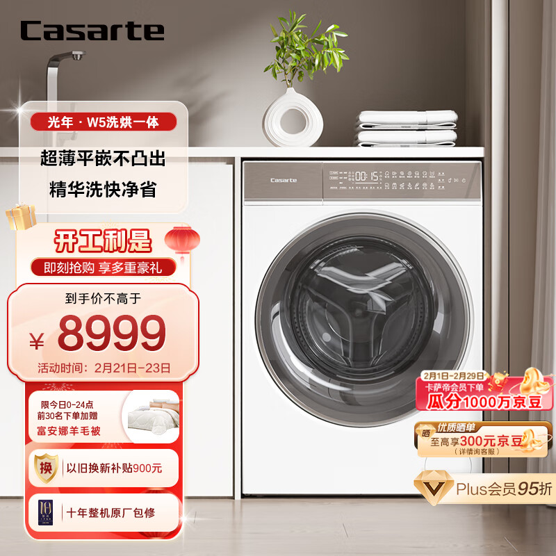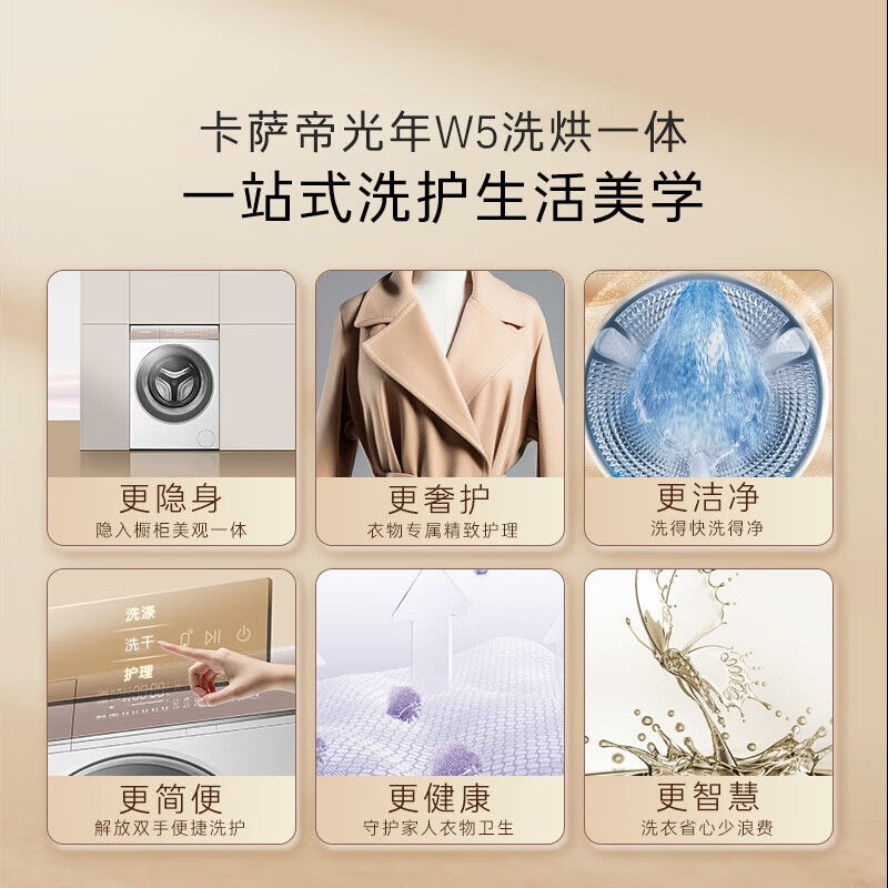 卡萨帝(Casarte)光年W5滚筒洗衣机全自动 10公斤洗烘一体机 精华洗快净省 超薄纯平嵌入 空气洗护理 HD10W5ELU1价格:8999.00元!
