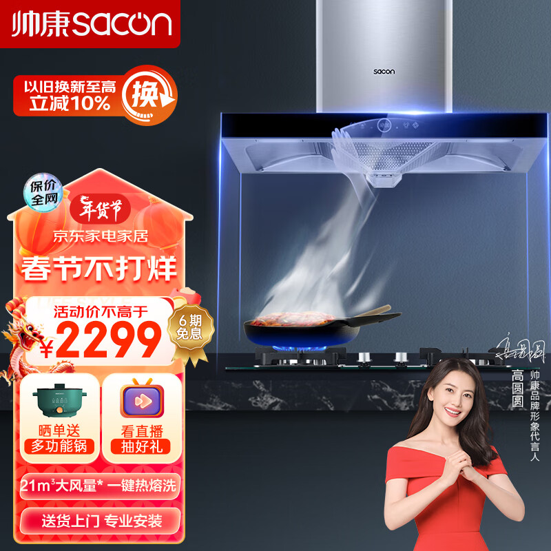 帅康(Sacon)抽油烟机烟灶套装家用21风量欧式油烟机燃气灶油烟机灶具套装挥手智控T8088+LB850B2天然气价格:2299.00元!