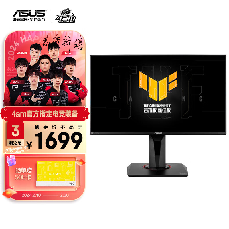 华硕TUF VG259QM战杀25 24.5英寸显示器电竞240Hz显示器超频280Hz FastIPS 1ms响应HDR400旋转升降音响价格:1749.00元!