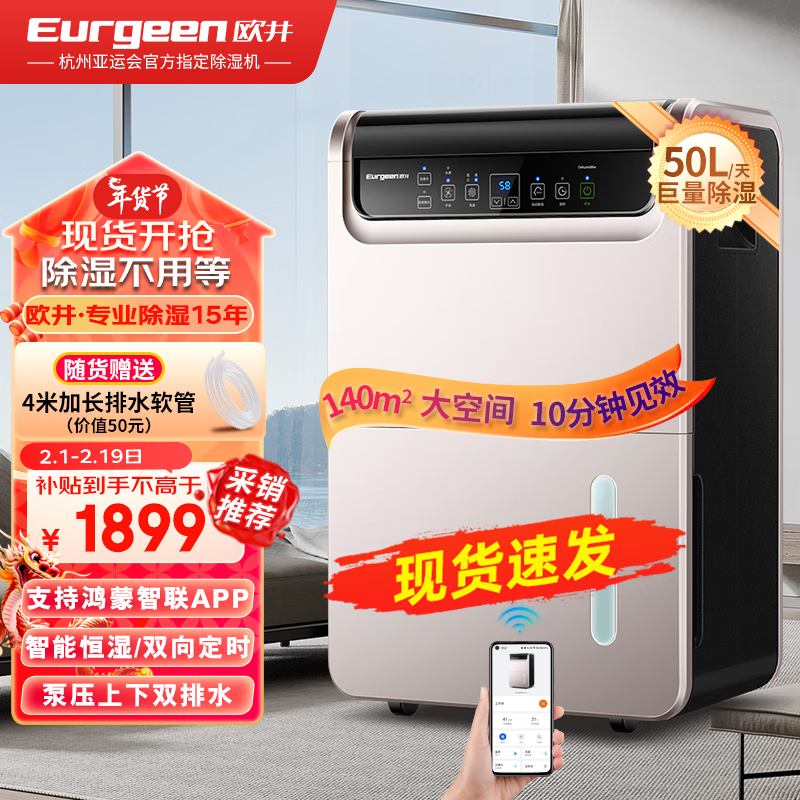 欧井(Eurgeen)除湿机/抽湿机 除湿量50升/天 泵压排水 家用地下室别墅商用工业净化净味吸湿器 OJ-550EP价格:1999.00元!