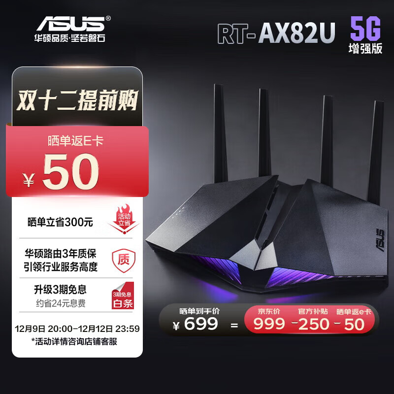 华硕(ASUS)RT-AX82U双频5400M全千兆路由无线路由器/RGB电竞灯效/WiFi6/电竞路由/家长路由【5G增强版】价格:749.00元!
