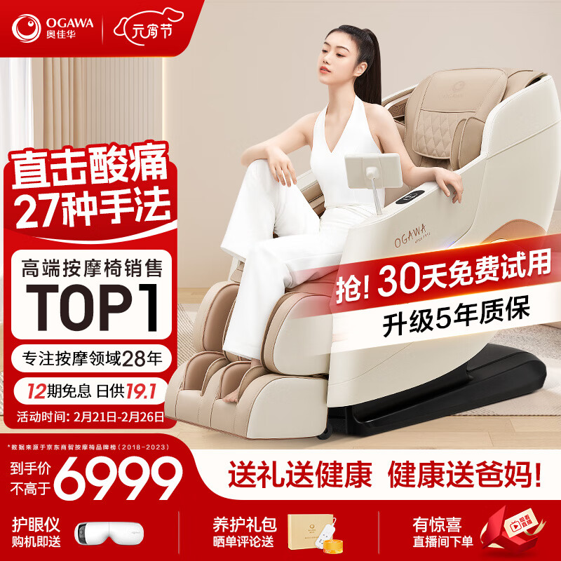 奥佳华(OGAWA)按摩椅家用太空舱颈椎肩颈全自动按摩沙发舒适零重力全身3D机芯中医养生按摩椅子送老人 创享家M80 【现象级按摩椅】光暮杏价格:11999.00元!