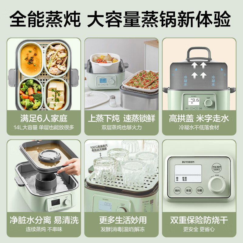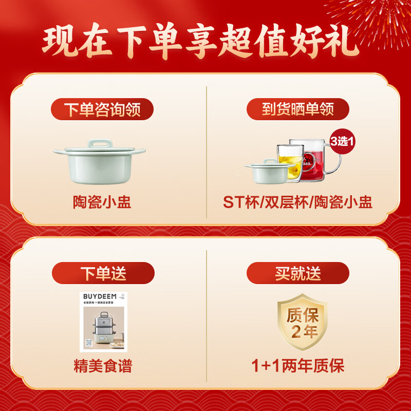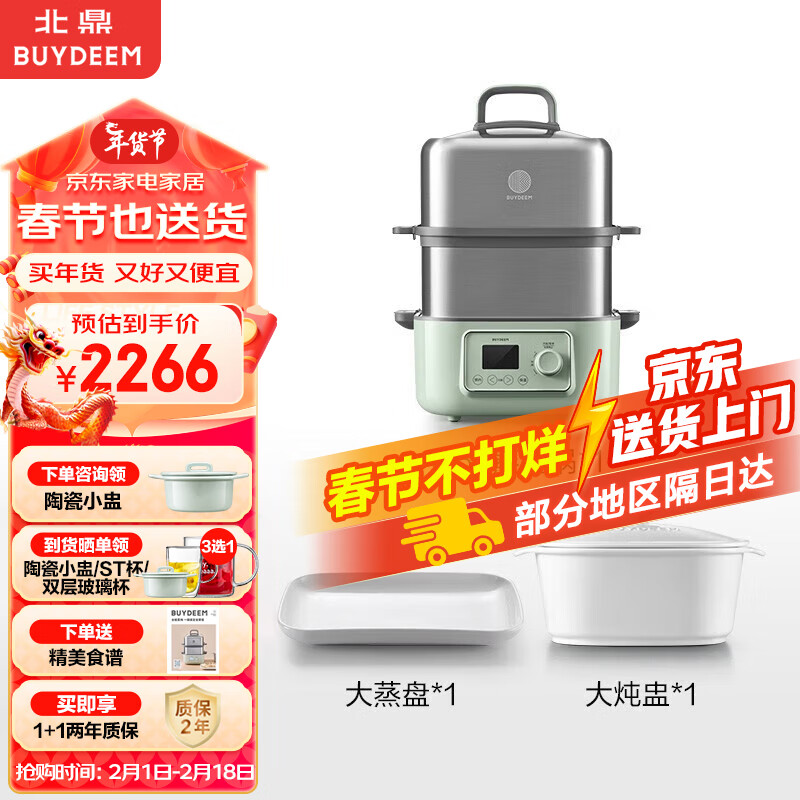 北鼎(Buydeem) 蒸炖锅家用电蒸锅年货送长辈全自动预约多用途锅【蒸炖套餐】G68双层14L+大炖盅+蒸盘价格:2266.00元!