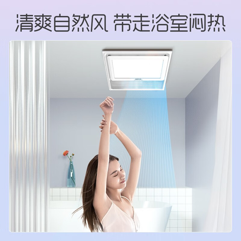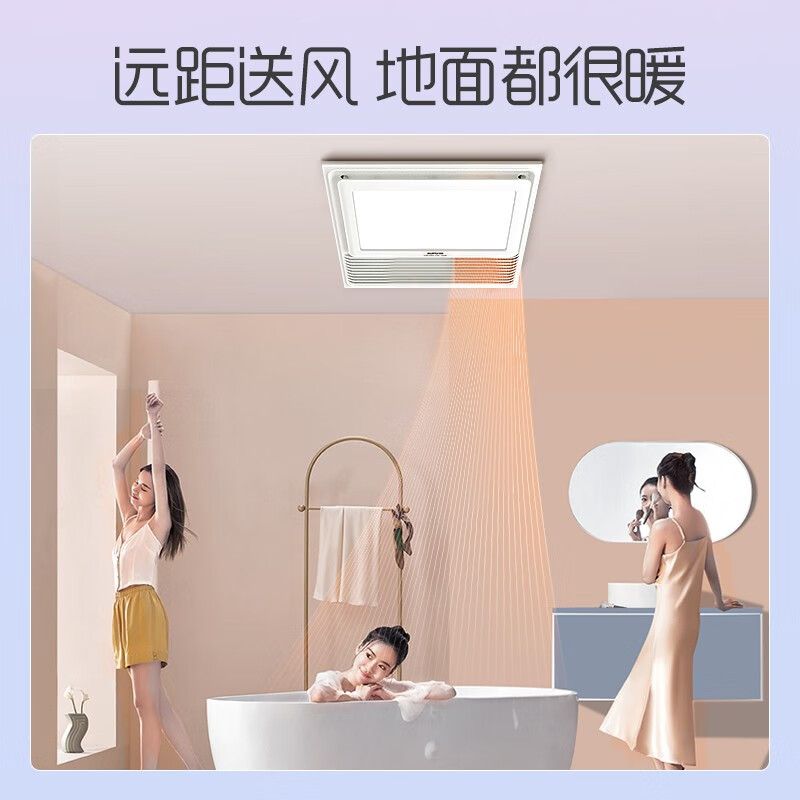 3、浴霸外观很漂亮,很时尚,我家是原来的老浴霸,不热而且很危险,就换了这个,灯光很亮,吹风和风暖都很好,升温很快,外观漂亮