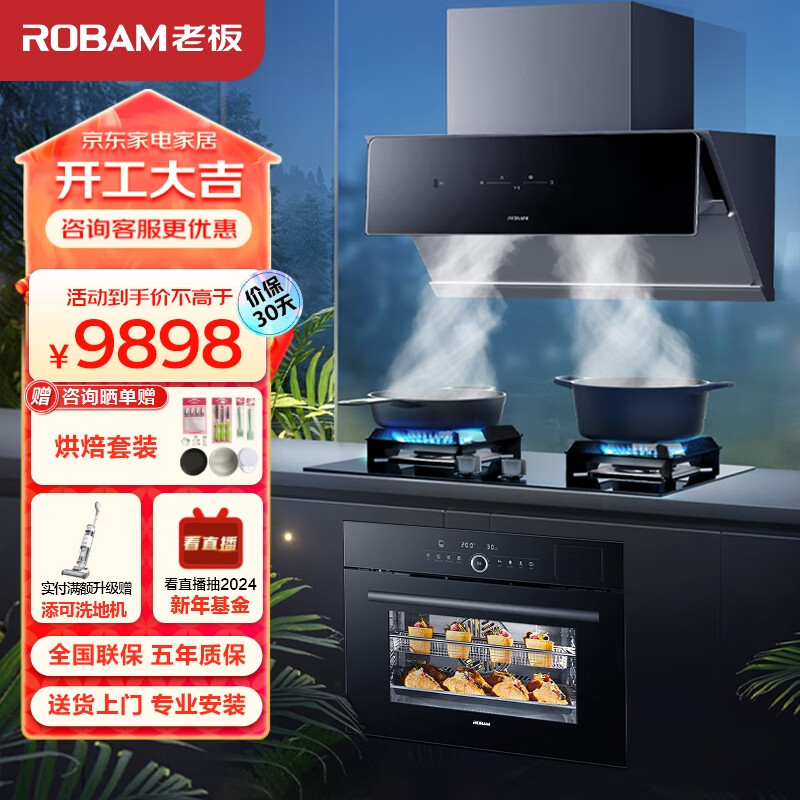 老板(Robam)28D3S+57B2DT+CQ9062D烟灶蒸烤套装厨房多件套一体机嵌入式23m3/min抽油烟机(天然气) 价格:9198.00元!