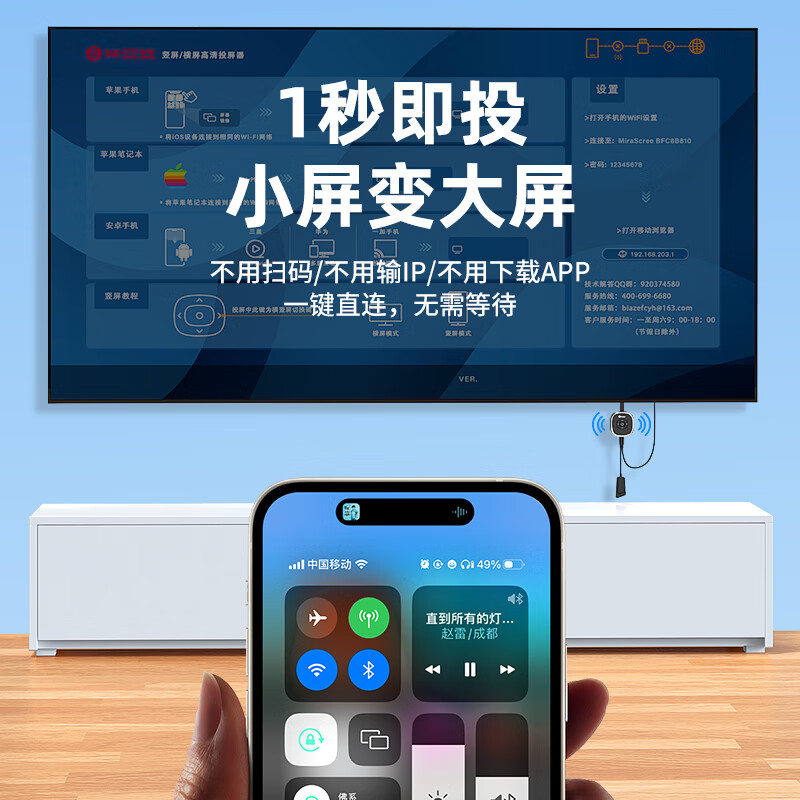 毕亚兹手机无线投屏器 4K高清 R99配置参数: