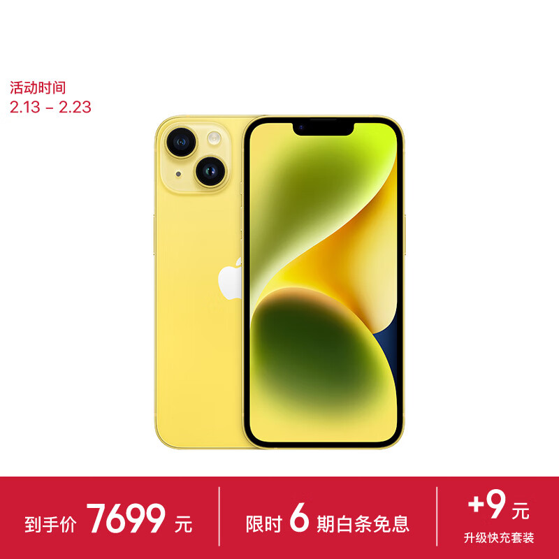 Apple/苹果 iPhone 14 (A2884) 512GB 黄色 支持移动联通电信5G 双卡双待手机价格:7699.00元!
