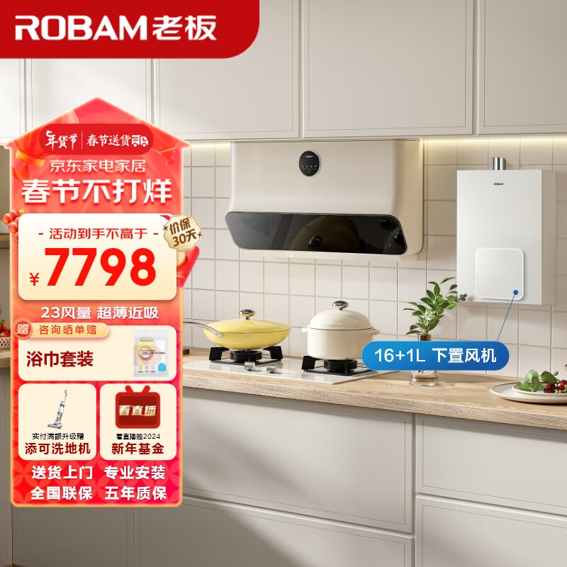 老板(Robam)抽油烟机烟灶热 空间大师A3S白色23风量超薄近吸烟机燃气灶热水器 22A3S+32B8AT+HD660A-16价格:7798.00元!