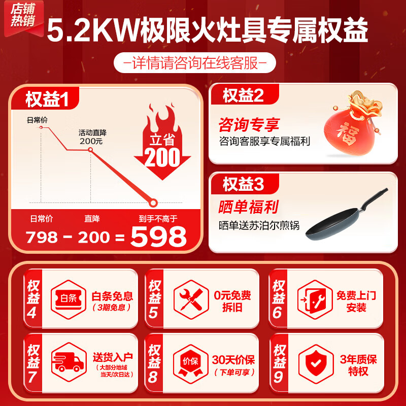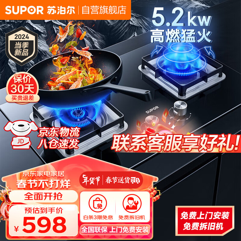 苏泊尔(SUPOR)燃气灶家用天然气灶5.2KW火力液化气灶双灶台式嵌入式两用罐装煤气灶灶具PB13 【罐装液化气】5.2KW立体进风价格:598.00元!