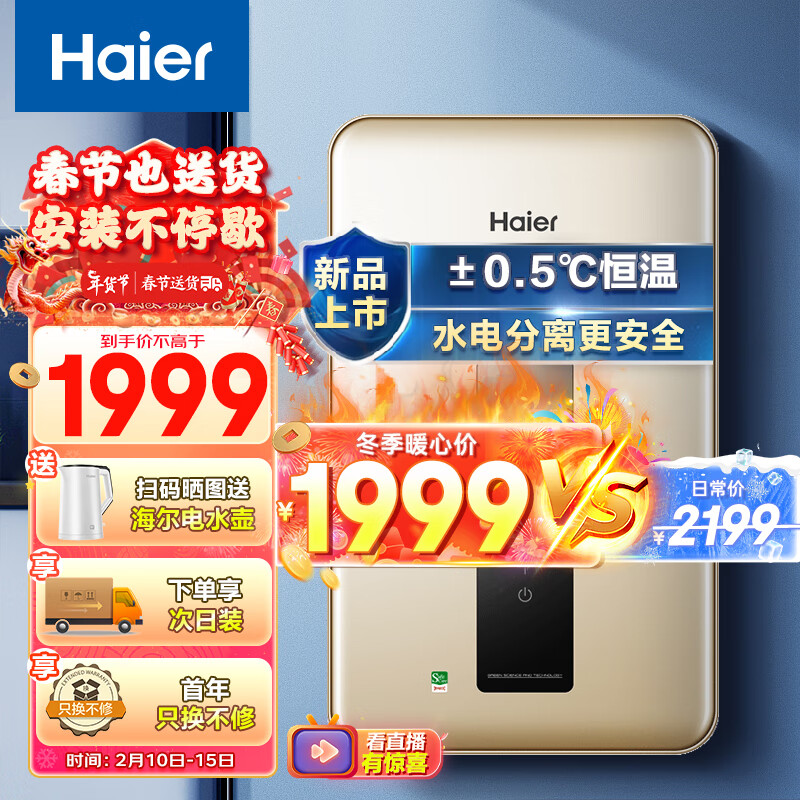海尔(Haier)电热水器 即热式 高颜值 即开即热一键AI 节能/生活双模式 防电墙 DSH-85AD1价格:2199.00元!