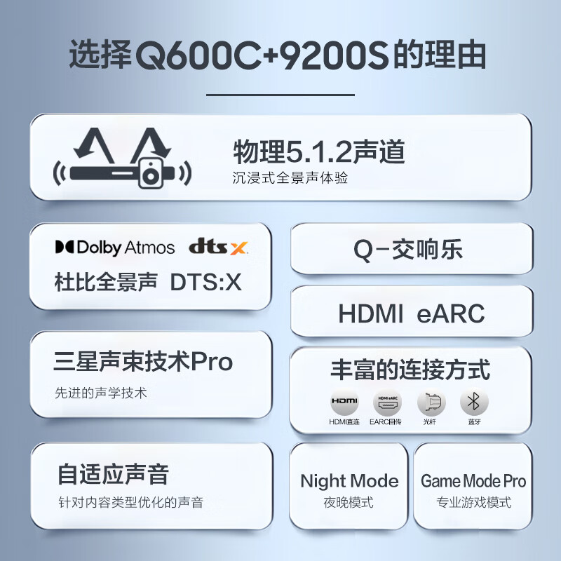 三星(SAMSUNG)HW-Q600C/XZ+SWA-9200S套装 5.1.2全景音效 无线蓝牙回音壁 Soundbar 条形音箱 家庭影院价格:2839.00元!