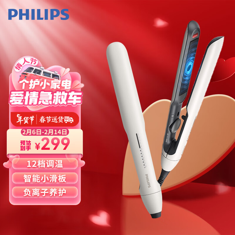 飞利浦(PHILIPS)电卷发棒 直板夹? 智能温控 卷直两用 小滑板 BHS515/05 白色价格:299.00元!