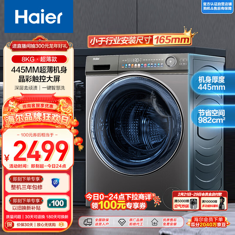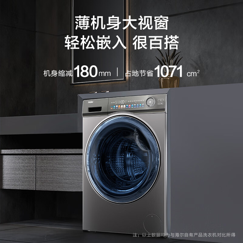 海尔(Haier)滚筒洗衣机全自动 8公斤大容量 525大筒径 445mm超薄平嵌 高颜晶彩屏 BLDC变频电机 EG80MATESL6价格:2599.00元!
