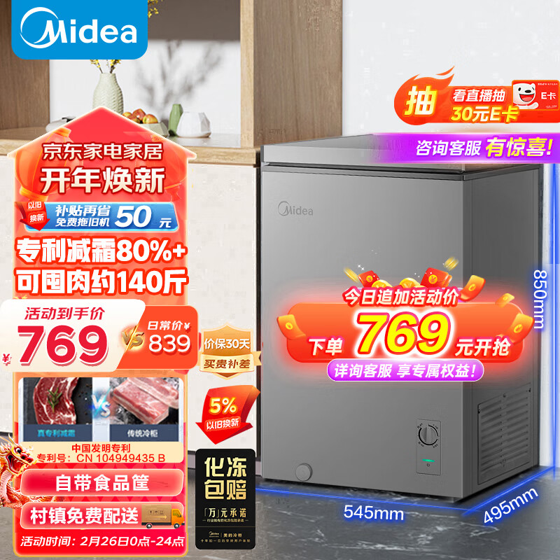 美的(Midea)100升 减霜家用囤货小冷柜 冷藏冷冻转换冰柜 一级能效母婴母乳小冰箱 BD/BC-100KMF(E) 以旧换新价格:819.00元!