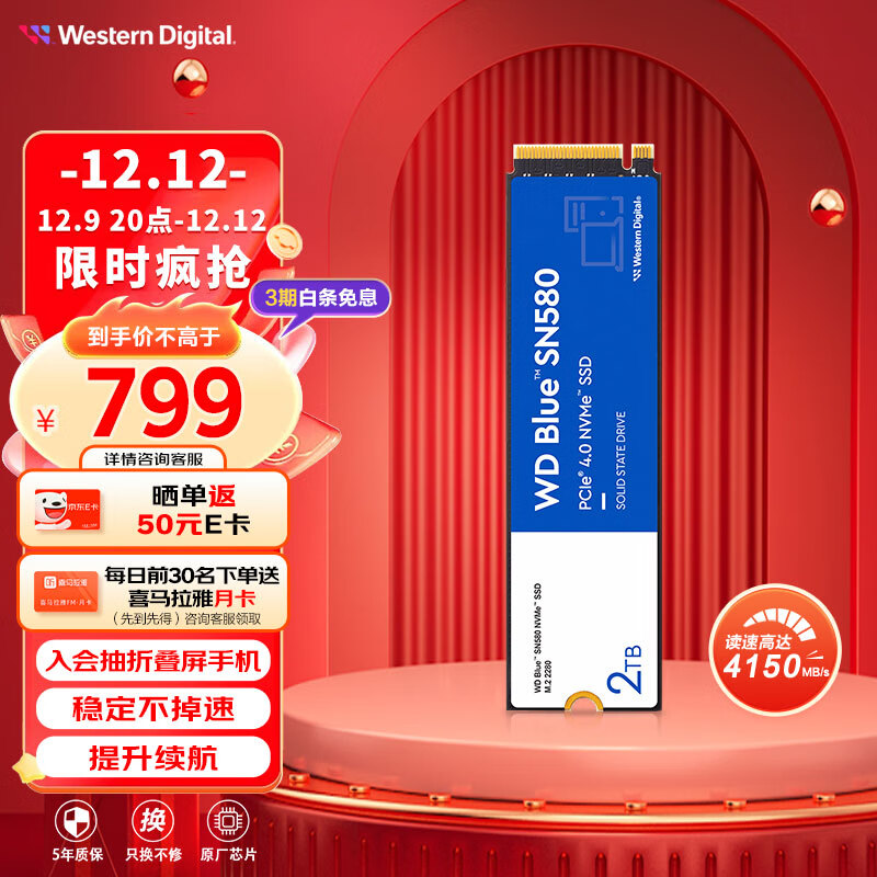 西部数据(Western Digital)2TB SSD固态硬盘 M.2(NVMe协议) SN580 PCIe4.0 2280笔记本电脑台式储存硬盘价格:799.00元!