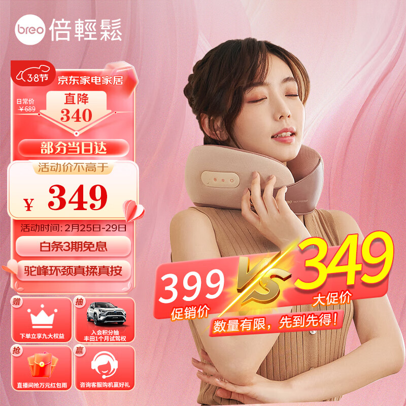 倍轻松(breo)颈椎按摩器Neck C2 颈部肩颈按摩仪器枕环颈U型枕热敷揉捏 38三八妇女节女神节礼物礼品价格:439.00元!