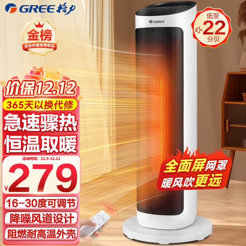 格力(GREE)取暖器遥控电暖器数码显示屏电暖气家用塔式立式摇头暖风机 【金榜单品】遥控款珊瑚玉+黑NTFH-X6020B价格:289.00元!