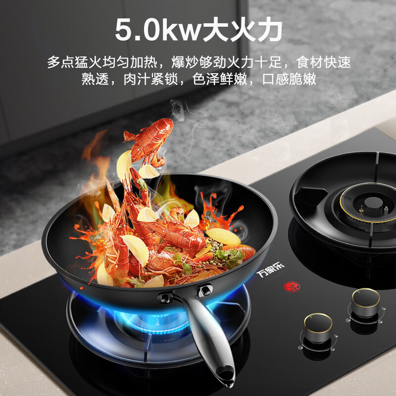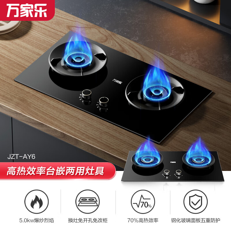 万家乐燃气灶 5.0kw大火力 70%热效率台式嵌入式两用燃气灶双灶 可适配开孔尺寸全进风天然气灶JZT-AY6价格:799.00元!