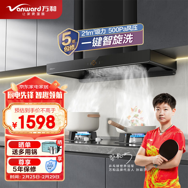 万和(Vanward)欧式油烟机家用顶吸式 21m3/min大吸力 烟灶套餐抽油烟机燃气灶具套装 WX536+B7L51(液化气)价格:1598.00元!
