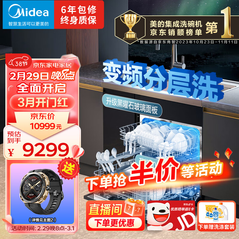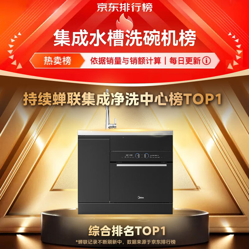 美的集成水槽变频洗碗机一体式13套分层洗光触媒净味超一级水效集成洗碗机 集成洗碗机XH09价格:10999.00元!