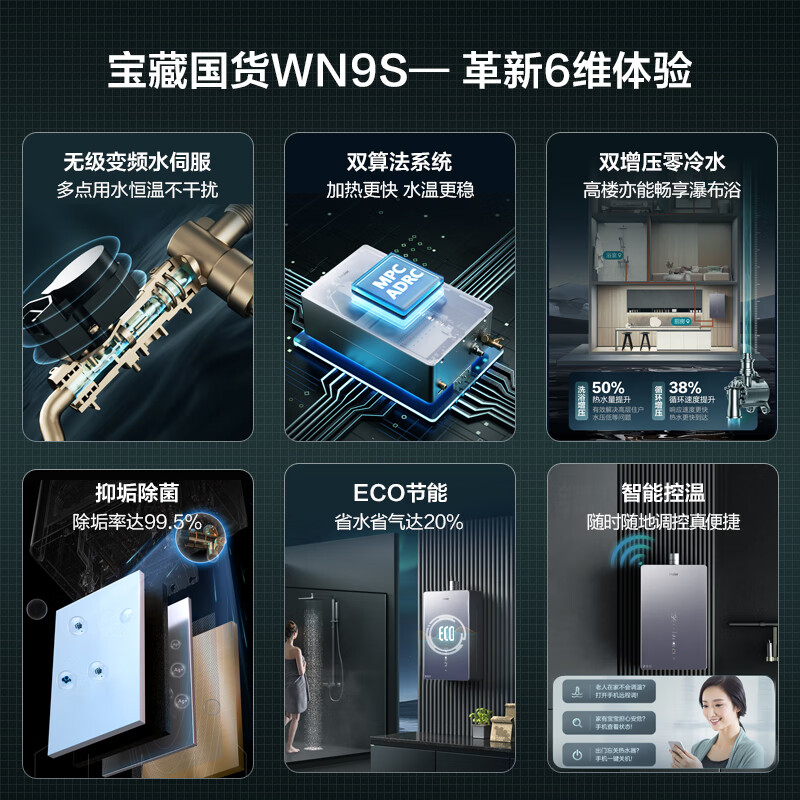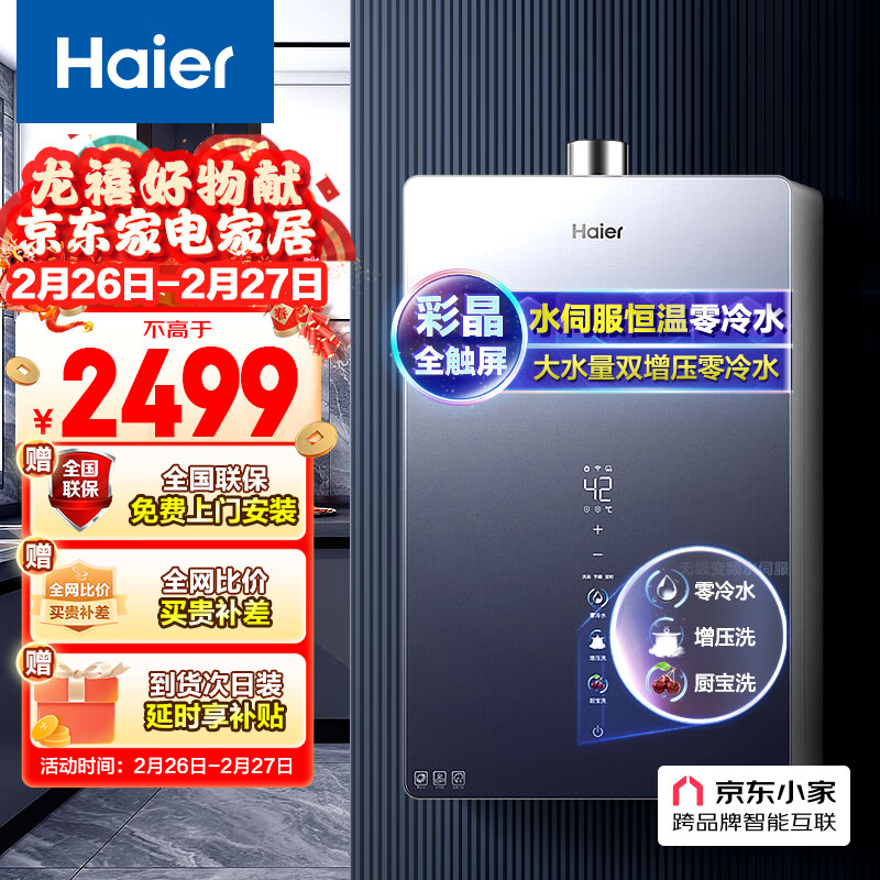 海尔(Haier)16升燃气热水器天然气无级变频水伺服恒温双增压零冷水抑垢护肤净水洗彩晶屏JSQ30-16WN9S(12T)U1价格:2499.00元!