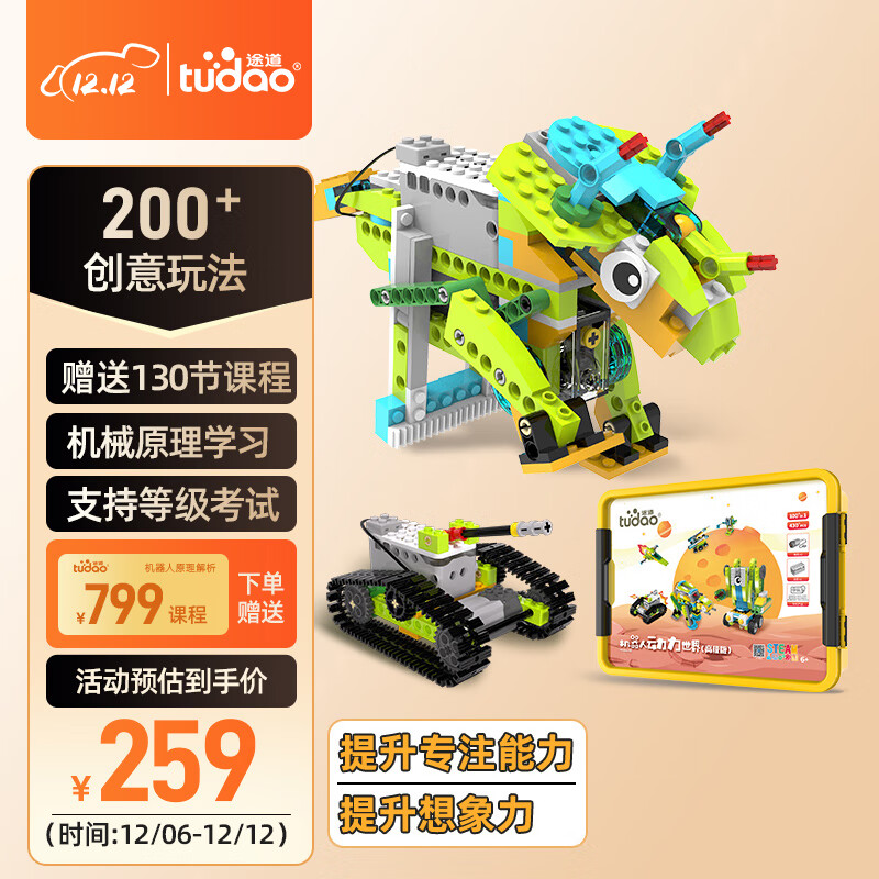 途道(tudao)动力高级编程机器人科教电动积木儿童玩具男孩生日圣诞节礼物价格:259.00元!