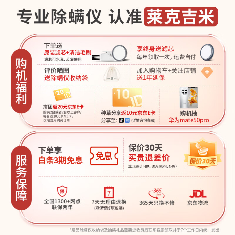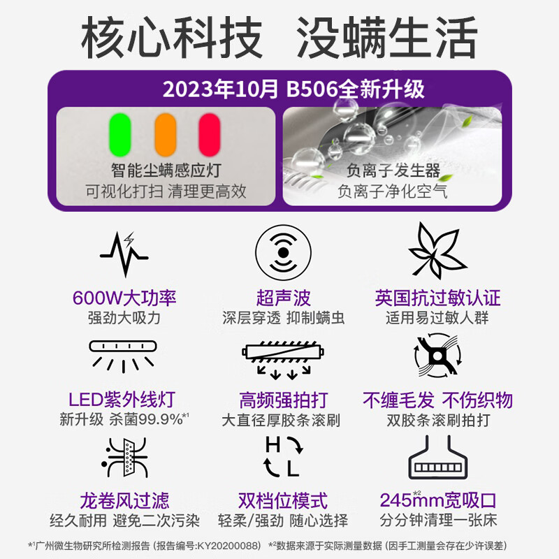 莱克吉米【38好礼】除螨仪鲸吸B506智能款家用床上小型手持吸尘神器超声波紫外线杀菌大吸力一体机价格:599.00元!