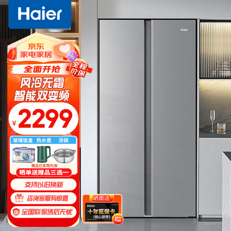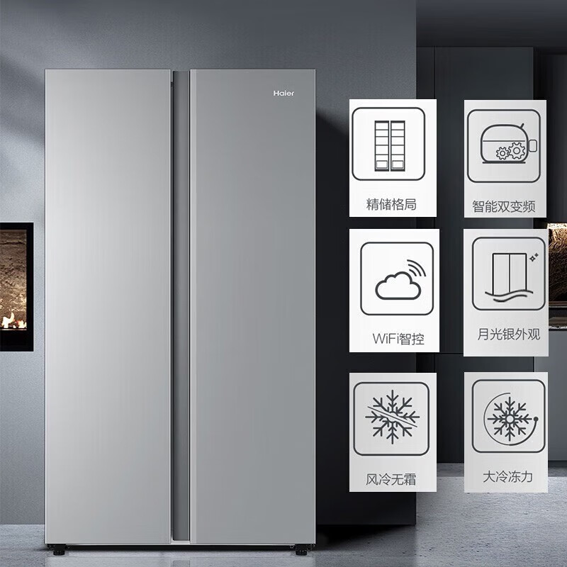 海尔冰箱481升对开门双开门风冷无霜节能双变频大冷冻力WIFI智控家用大容量电冰箱BCD-481WGHSSEDS9U1价格:2299.00元!