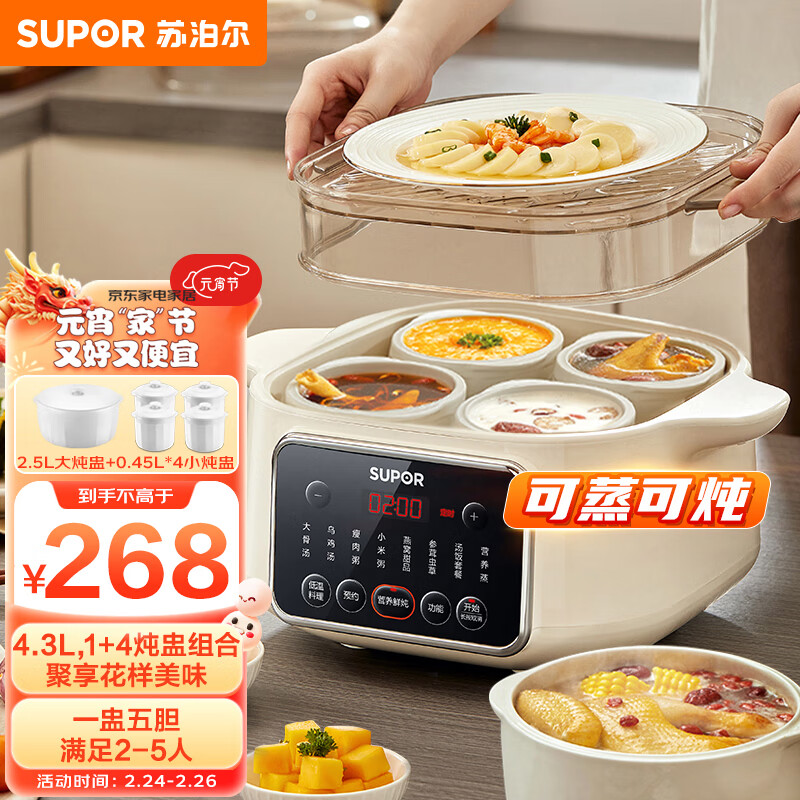苏泊尔(SUPOR)电炖锅 电炖盅 煲汤锅炖汤锅 电蒸锅 隔水炖锅 燕窝炖盅 煮粥神器 电煮锅陶瓷DZ25FC859 2.5L价格:268.00元!