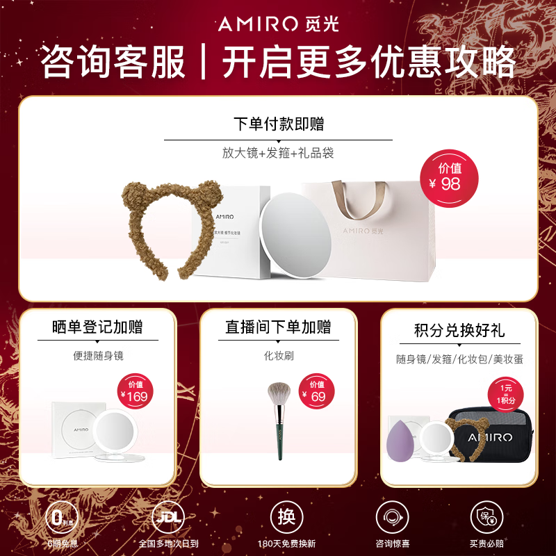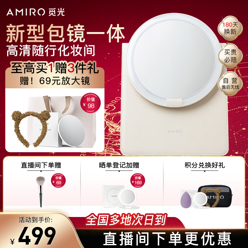 AMIRO觅光 包包镜化妆镜带灯led日光梳妆美妆镜子补光 智能高清台式便捷 女神节新年礼物送女生送老婆价格:599.00元!