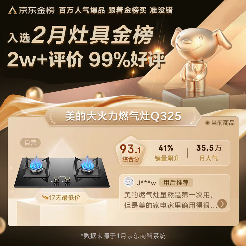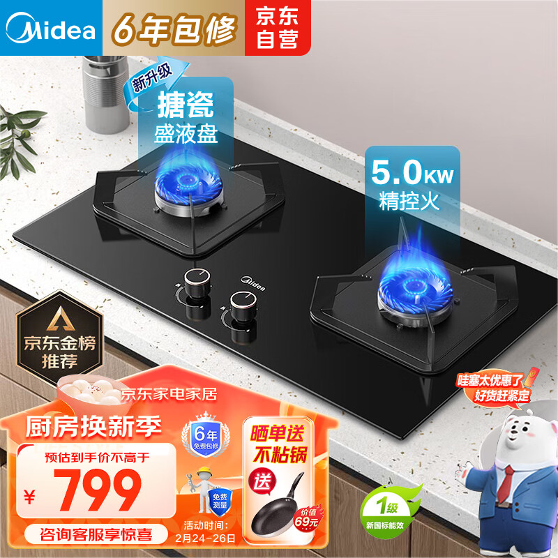 美的(Midea)燃气灶天然气 双灶具 家用5.0kW猛火灶灶台嵌两用 高热效 可调节底盘 Q325-M价格:799.00元!